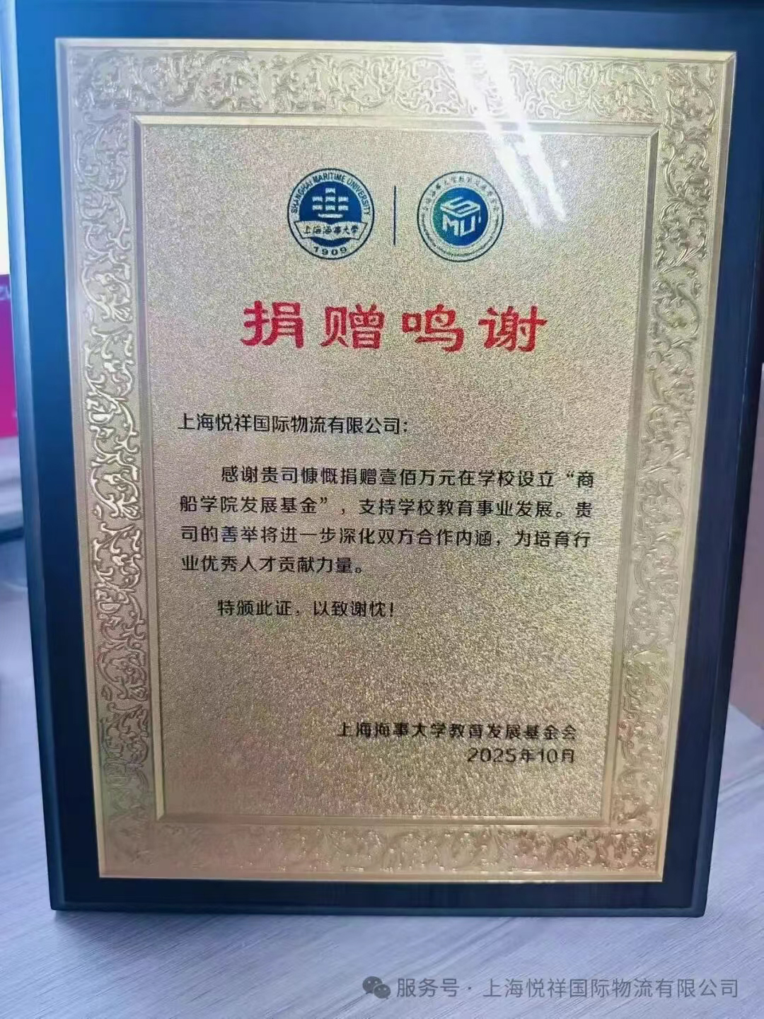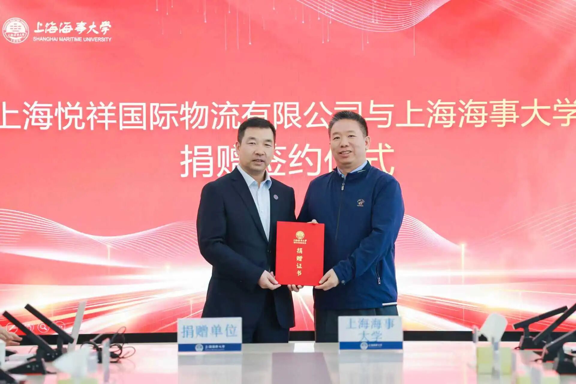 10月25日,上海悦祥国际物流有限公司(以下简称“公司”)向上海海事大学捐赠人民币100万元,汇入学校“商船学院发展基金”,捐赠签约仪式在学校隆重举行,公司总经理、学校1995级航海技术专业校友王祥,校党委副书记、副校长李志鹏出席仪式。
